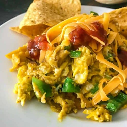 This is an excellent dish and a great way to start off Cinco de Mayo with a hearty Mexican brunch dish: Migas, are a popular Tex-Mex brunch food that consists of scrambled eggs, onion, bell pepper, and tortilla chips. Top with fresh salsa, sour cream, avocado and a little jalapeño and you’re good to go!