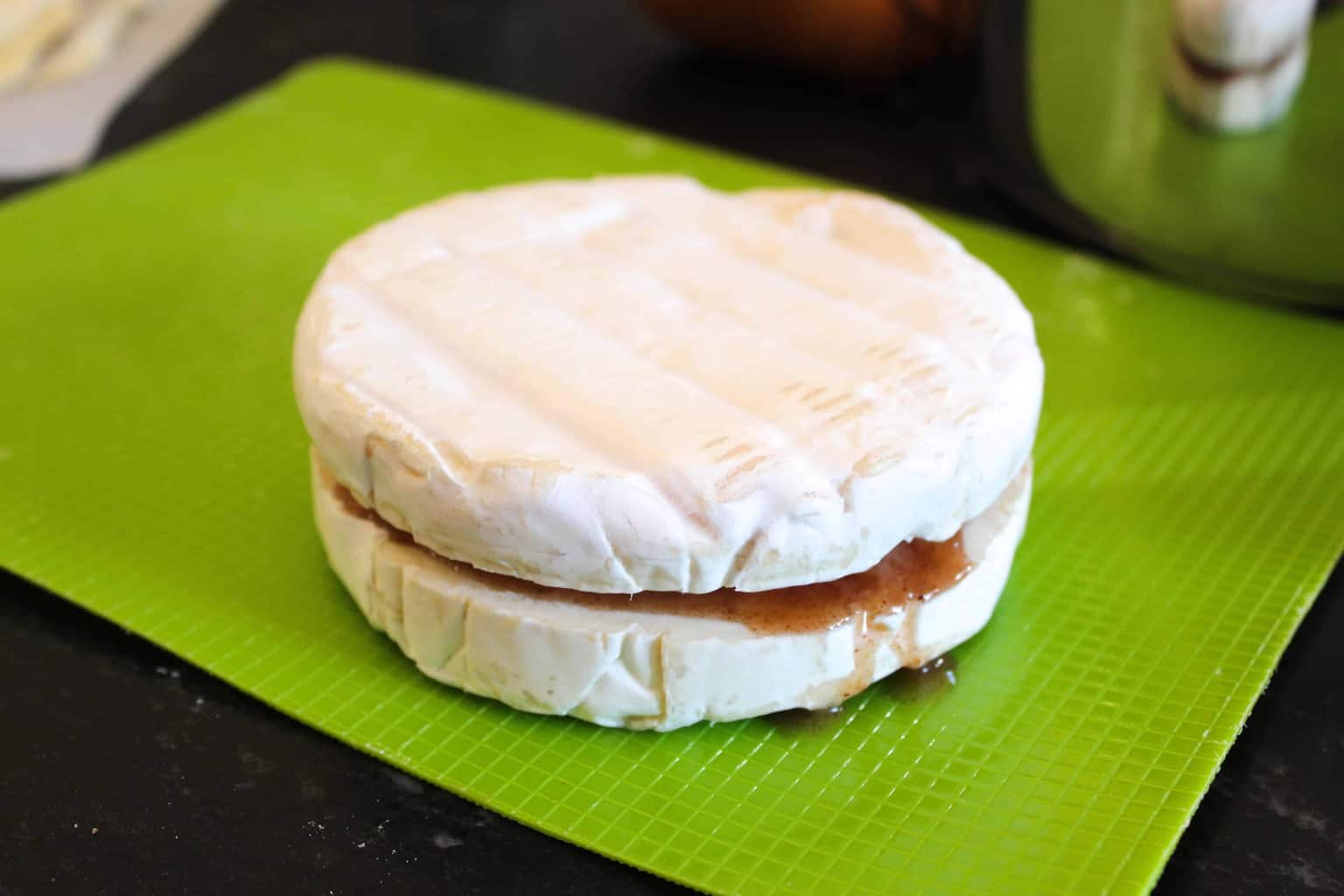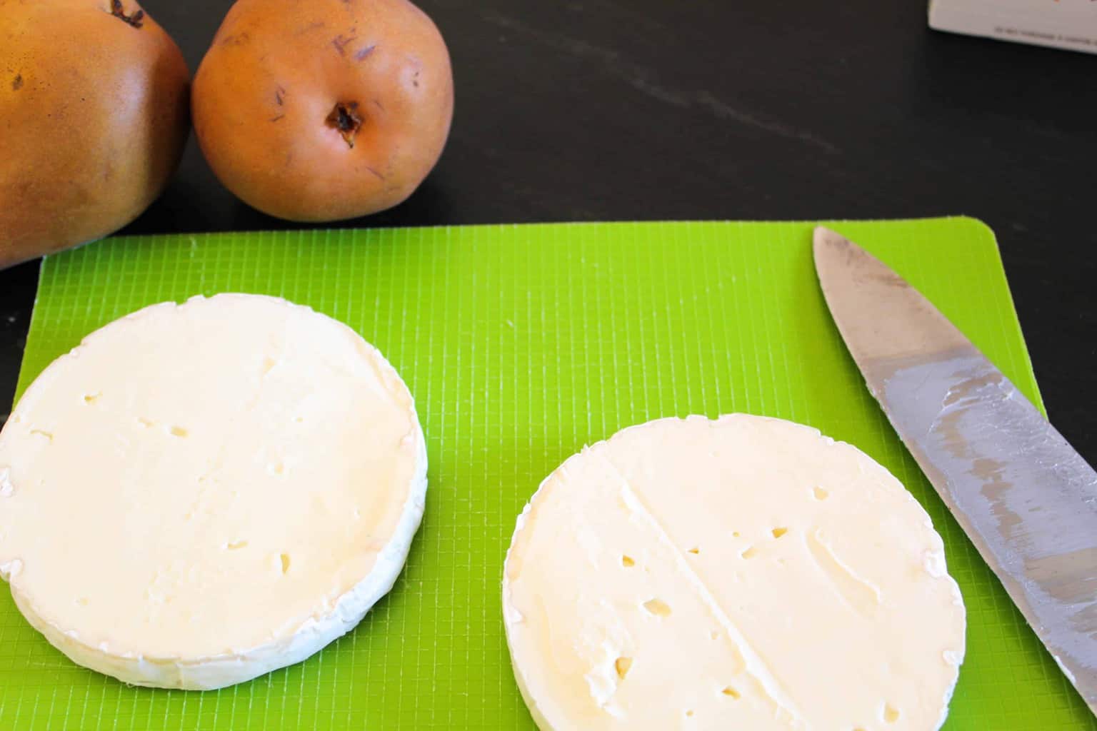 - Replace the other (top) half of the cheese over the pear compote