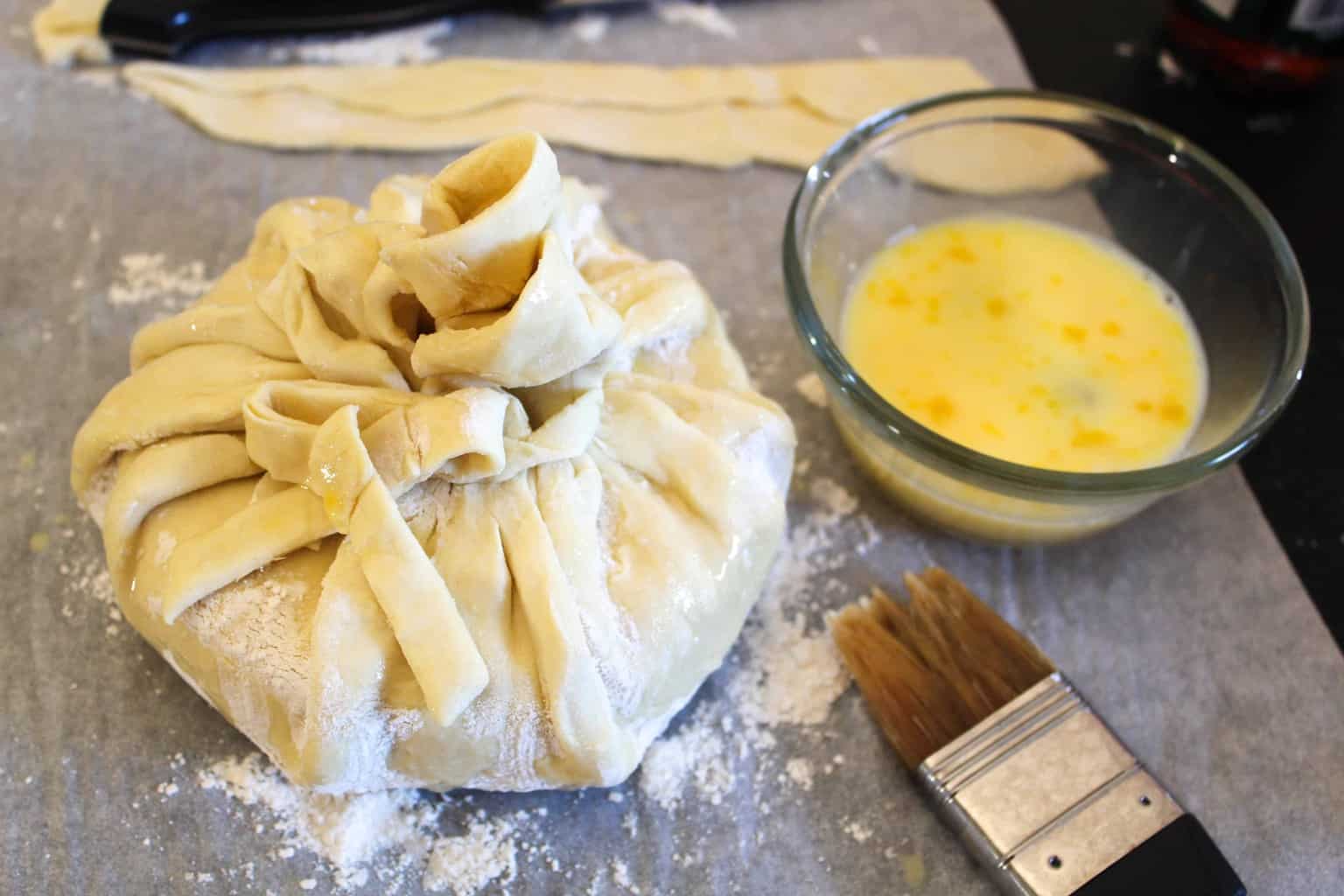 - Using a brush, gently brush the egg wash over the pastry